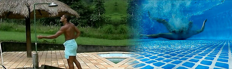 Fit young boy wanks at the pool