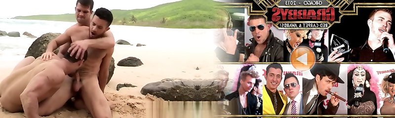 Hot fag threesome at the beach and double anal
